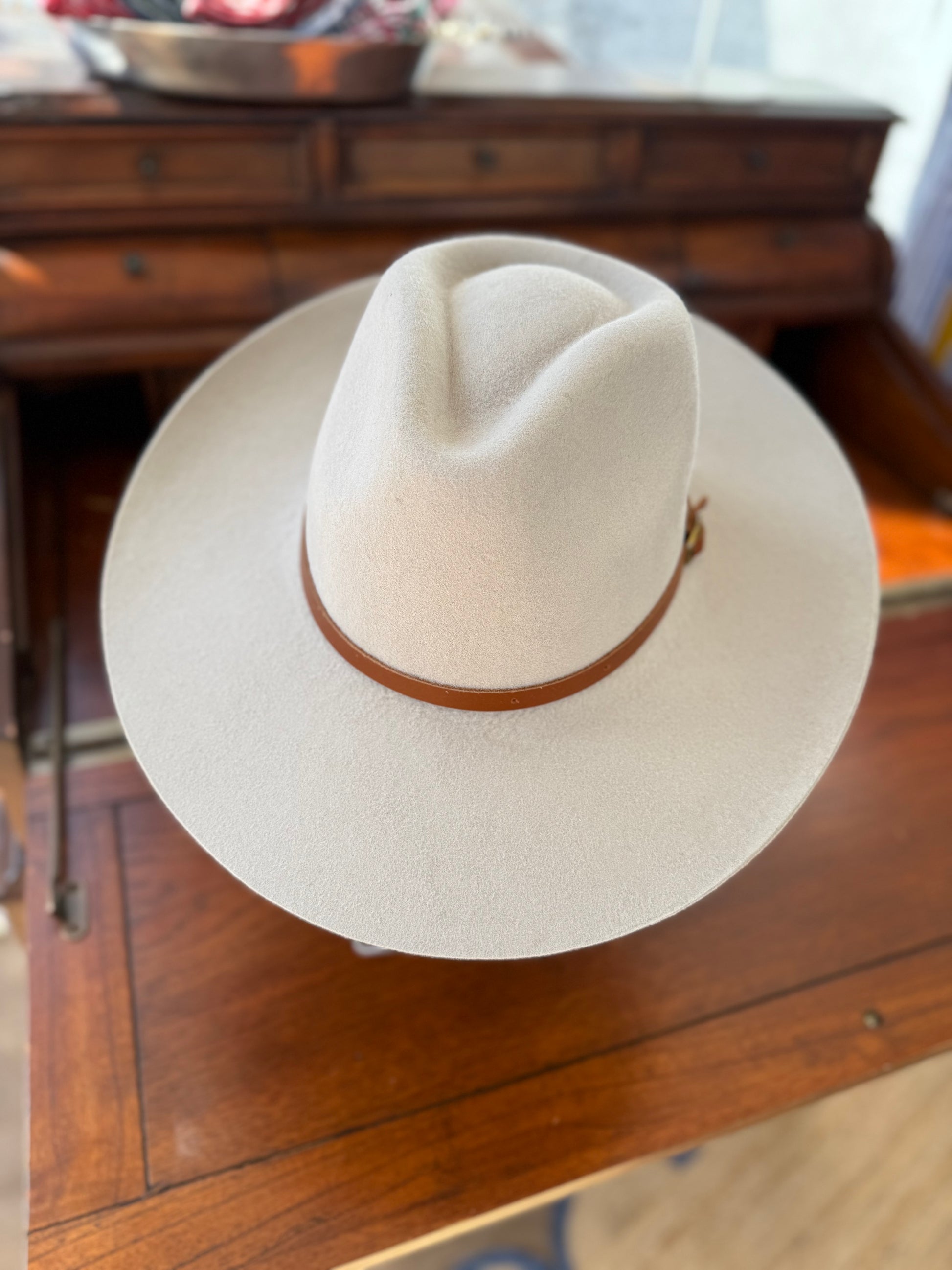 Stiff brim 100% wool rancher with a classic teardrop-shaped crown. Ready to customize!